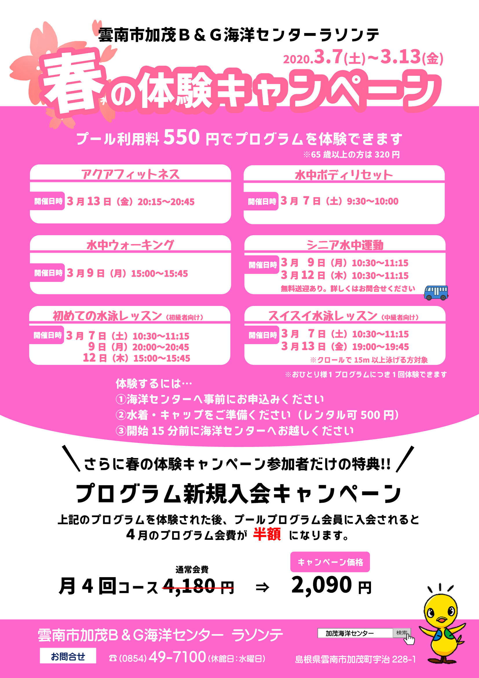 詳しくはチラシをご覧ください。春キャンペーンチラシ