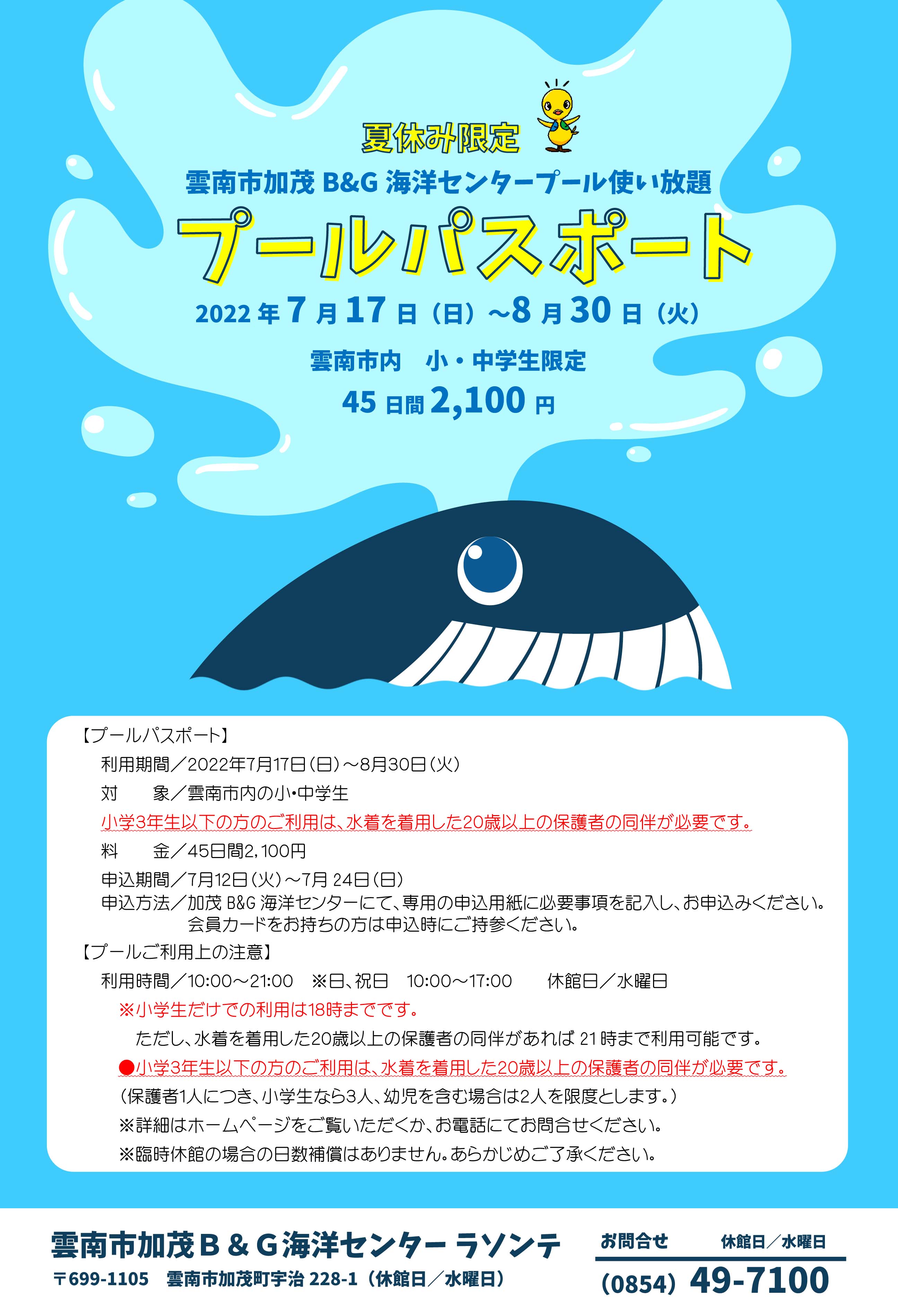 雲南市加茂B&G海洋センターをご利用いただき、誠にありがとうございます。