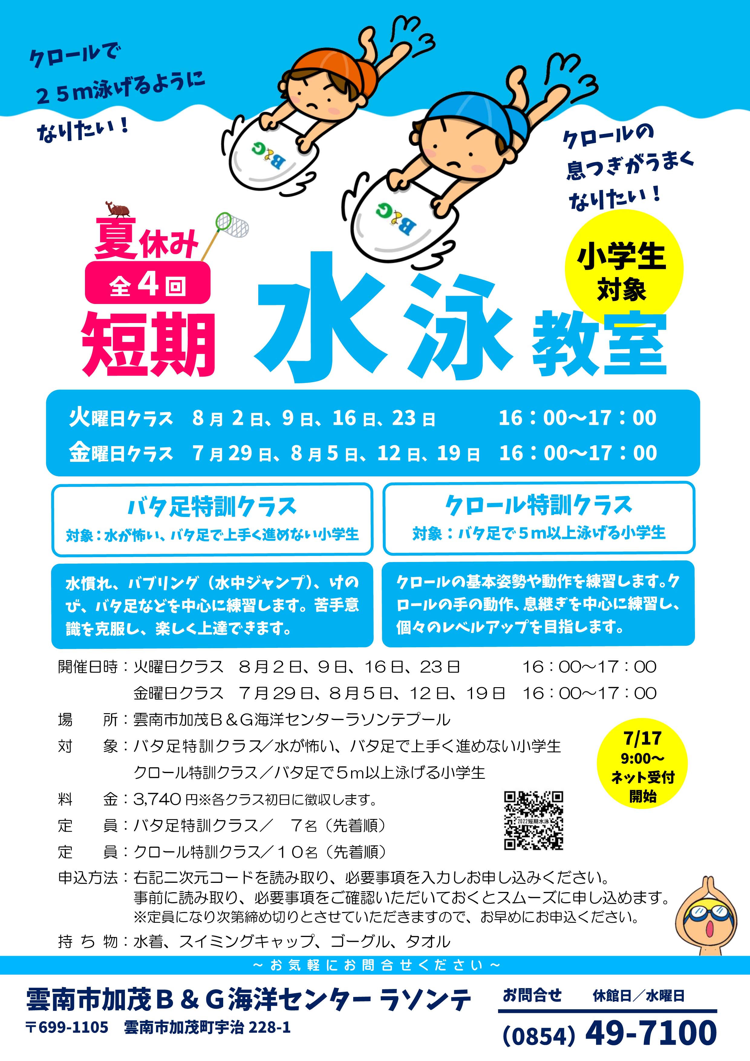 皆様の参加をお待ちしております【小学生対象 短期水泳教室】
