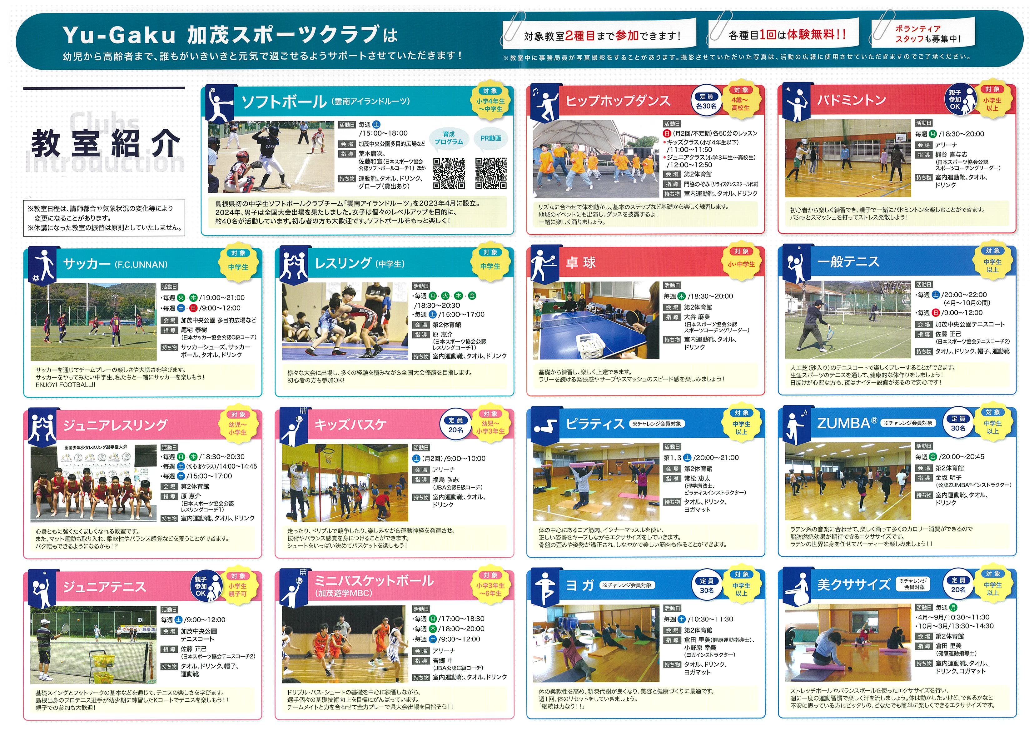 Yu-Gaku加茂スポーツクラブ 令和7年度新規申し込み受付について 更新日:2025年2月25日 Yu-Gaku加茂スポーツクラブ 令和7年度新規申し込み受付を開始いたします。詳細はパンフレットをご確認ください。お申し込みは、下記のURLからお願いいたします。 https://forms.gle/j9a2uQkGpaZ4epUW8 ※新規受付の方は、ネット申込のみとなりますので予めご了承ください。 ※令和6年度から継続の方は、郵送いたしました用紙でお申し込みください。