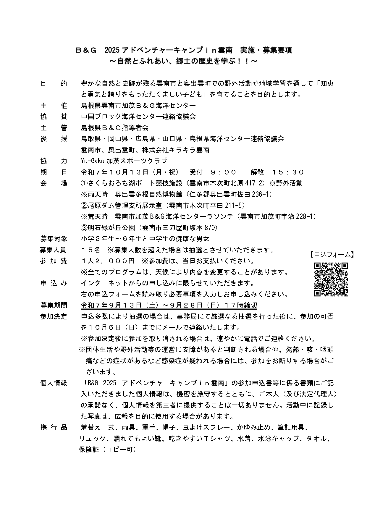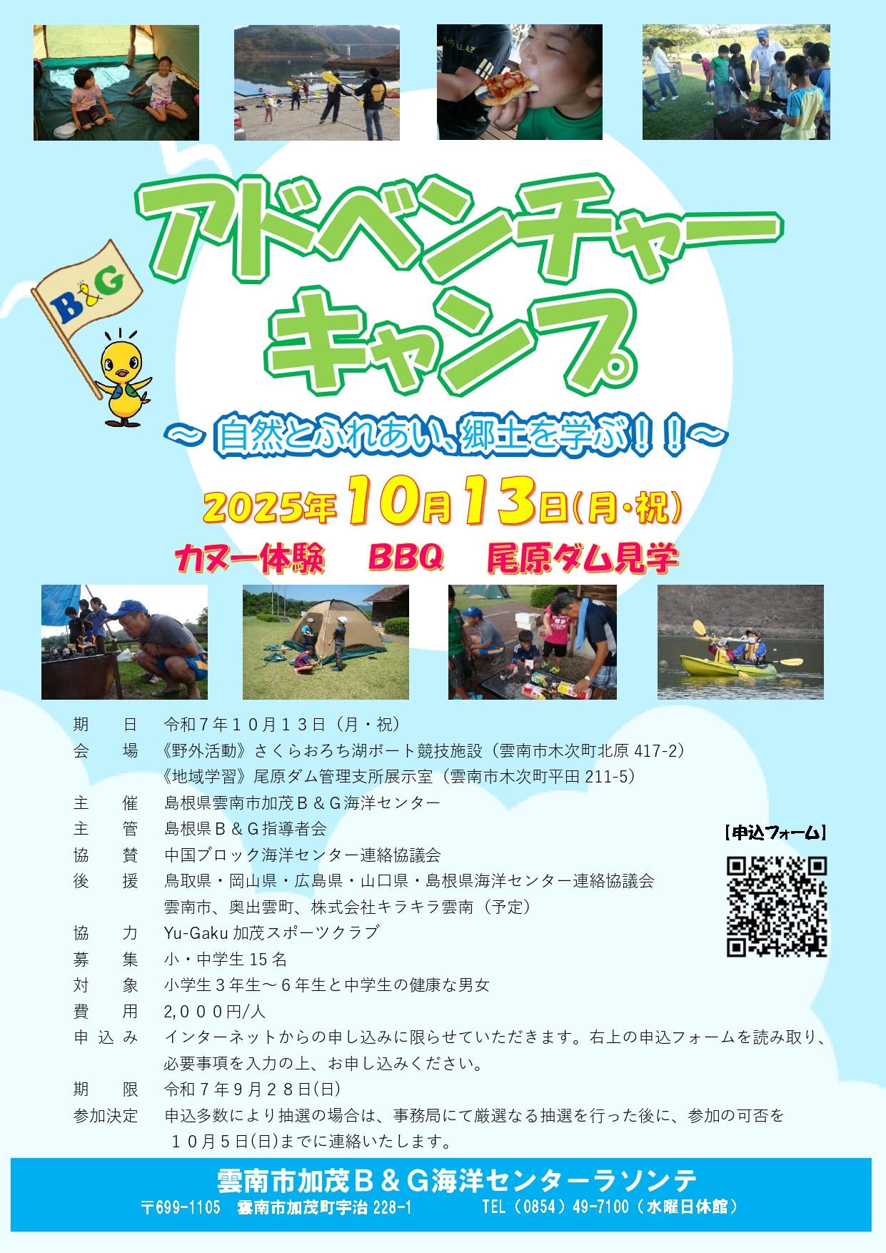 10/13(月・祝)に「アドベンチャーキャンプ~自然とふれあい、郷土を学ぶ~」を開催します。申し込みは、まだ受付中ですのでふるってお申し込みください!